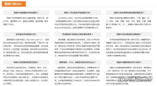 西部计划是国家重大人才工程“高校毕业生基层培养计划”的子项目,是引导和鼓励高校毕业生到基层工作的5个专项之一。党中央、国务院高度关心西部计划志愿者,高度重视西部计划和研究生支教团工作。习近平总书记曾多次作出批示或给志愿者回信,肯定志愿者们在西部地区辛勤耕耘、默默奉献,为当地经济社会发展、民族团结进步作出了贡献,勉励越来越多的青年人以志愿者为榜样,到基层和人民中去建功立业,让青春之花绽放在祖国最需要的地方,在实现中国梦的伟大实践中书写别样精彩的人生。