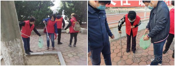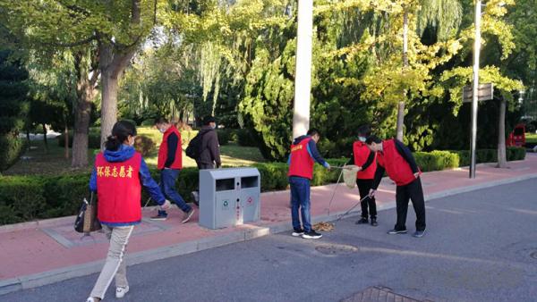 为深入贯彻落实习近平总书记关于新时代爱国卫生运动系列重要讲话精神,以“开展爱国卫生运动,助力 传染病疫情防控,人人有责,人人负责,人人尽责”为宗旨,学院党委组织全体师生党员参加“践行志愿服务理念、争做校园环保先锋”主题实践活动,从10月12日至29日,每周周一至周四早上七点,师生党员分组清理校园南北院的主干道垃圾。