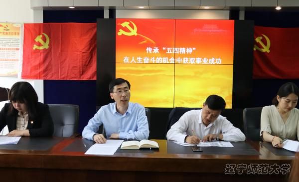 会上,党总支书记邓天鹏同志为毕业生党员上了一堂主题为《传承“五四精神”在人生奋斗的机会中获取事业成功》的党课。他首先肯定了毕业生党员们作为2019届毕业生的佼佼者在学习工作中的优异表现。邓天鹏书记指出,100年前爆发的爱国学生运动不仅催生了“五四”青年节,更凝练了伟大的“五四精神”。这种以爱国主义为源泉、以民主与科学为核心的“五四精神”,堪称热血青年们自发并逐渐凝成的一种神圣的精神追求。不管时光如何变幻,“五四精神”都世代相承,激励着成千上万的青年追求进步和光明,去实现国家富强、民族振兴和人民幸福。同学们要继续秉承五四民主传统,在党的领导下,不断增强对中国特色社会主义理论自信、道路自信和制度自信,将自己的“个人梦”融入伟大的“国家梦”、“民族梦”中,怀抱起真理想、练就好真本领。