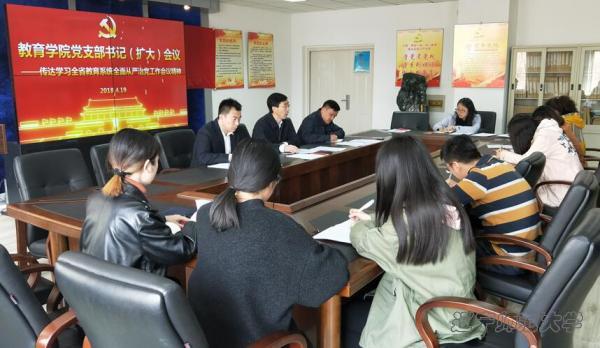 党总支在三楼会议室召开党支部书记(扩大)会议,传达学习全省教育系统和学校全面从严治党工作会议精神。党总支书记邓天鹏主持会议,各党支部书记、支部委员参加会议。