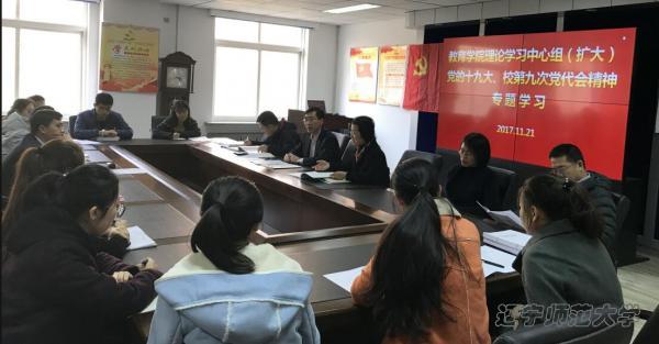 党总支在C310会议室召开理论学习中心组(扩大)会议,开展党的十九大精神和学校第九次党代会精神专题学习活动,学院中心组成员、学校党代表、党支部书记、工会委员、辅导员参加了学习活动,会议由党总支书记邓天鹏同志主持。