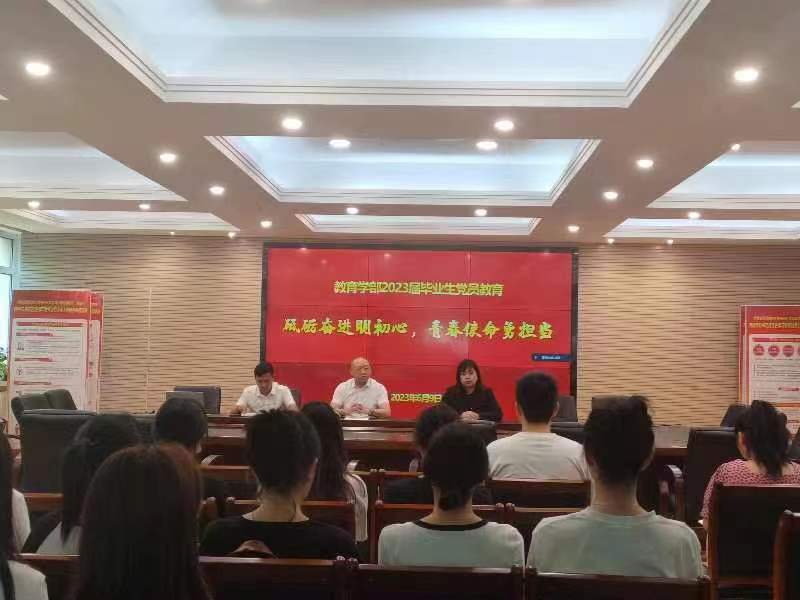 党委于6月9日9:00在田家炳教育书院310会议室以“砥砺奋进明初心,青春使命勇担当”为主题召开了2023届毕业生党员教育大会。会议由学部党委组织员祁源主持,学部党委书记林忠伟、团委书记乔冬以及全体2023届毕业生党员参加了本次会议。