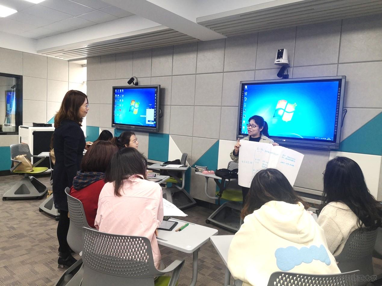 肖蕾副校长和石琳主任分别以语文和数学学科为例,采用协同学习的方式,模拟学科教师教研活动。实习生通过小组合作,针对具体课程内容设计“学习单”,切实体验学习共同体理念下的教研活动及课堂学习。