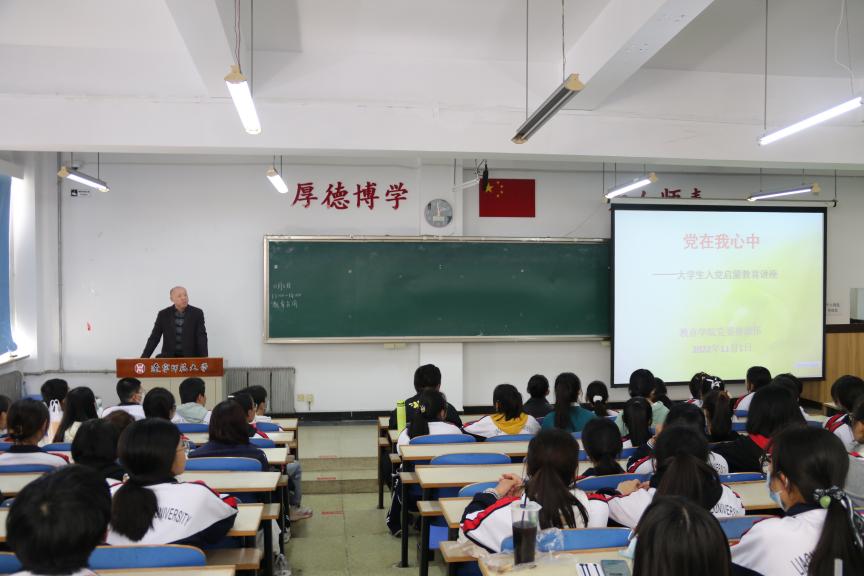 本次入党启蒙教育讲座,林书记以“党在我心中”为题,为2022级新生从“青年大学生为什么要入党”“青年大学生如何跟党走”以及“入党申请书的内容及要求”三个方面进行了讲解。