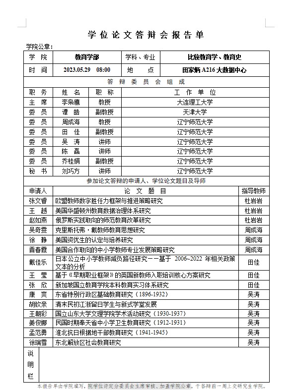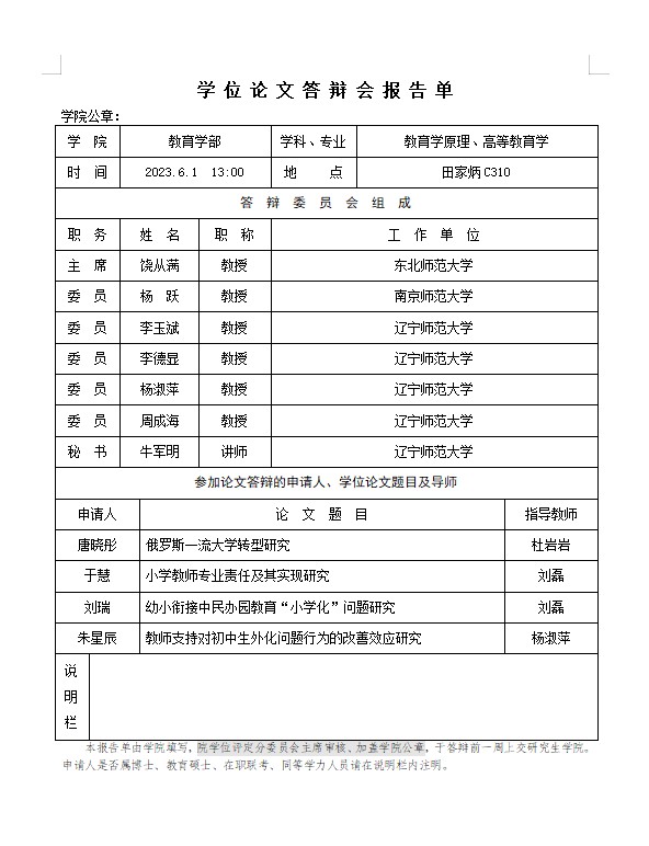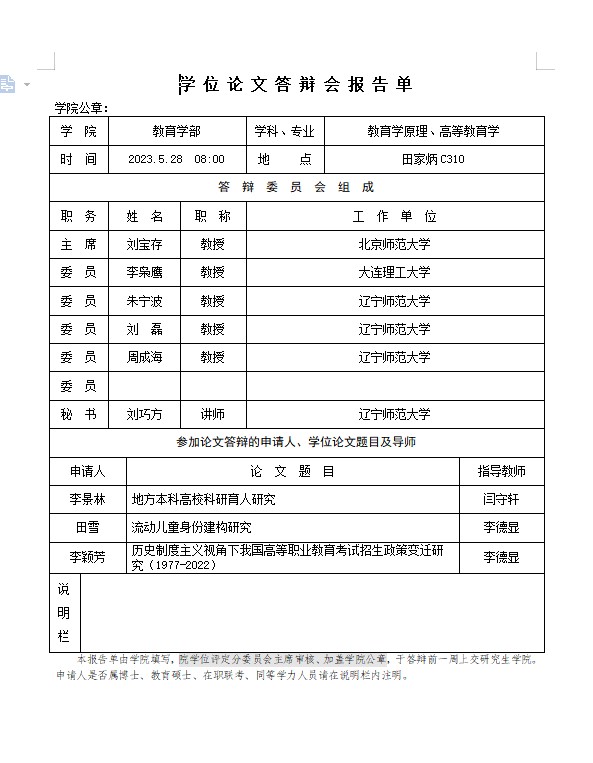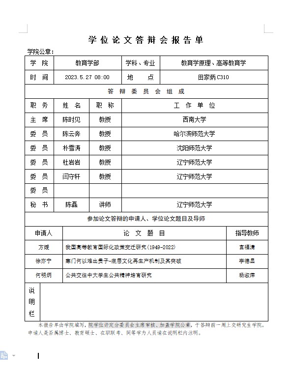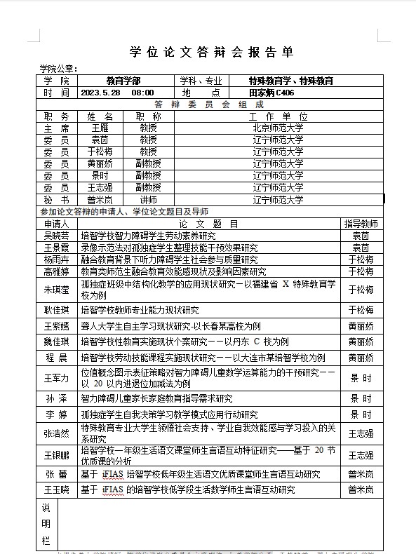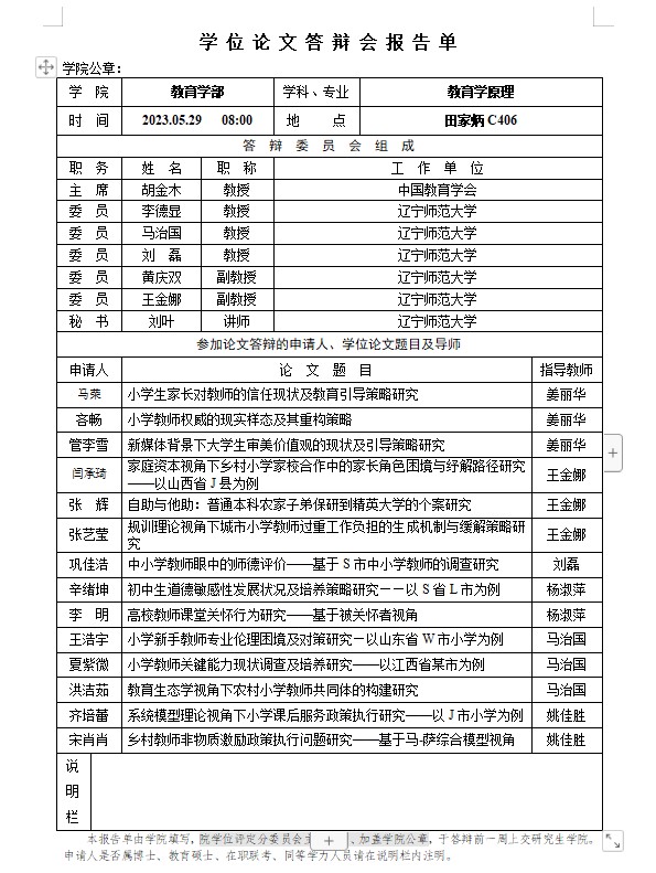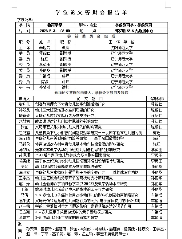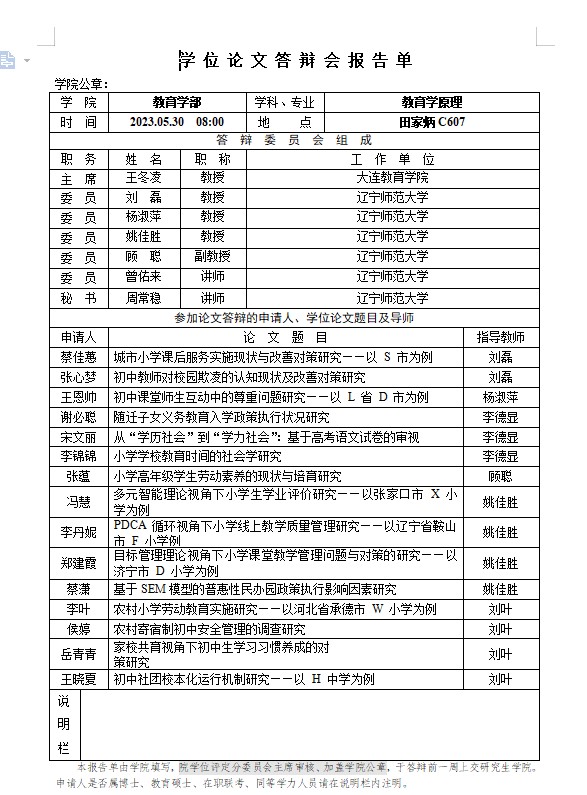 2023年学位论文答辩报告单公示