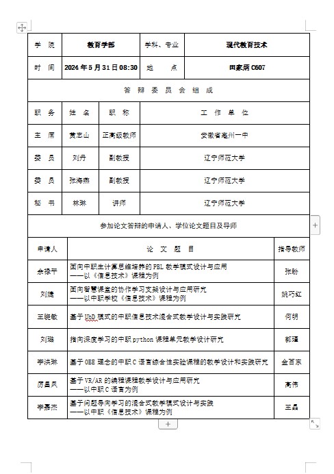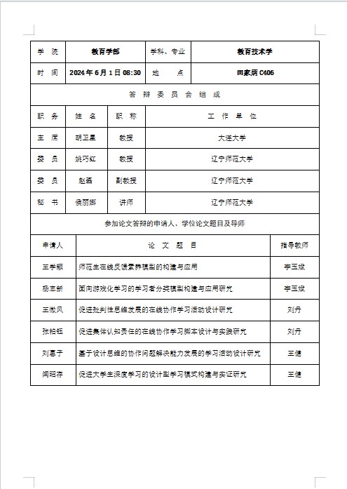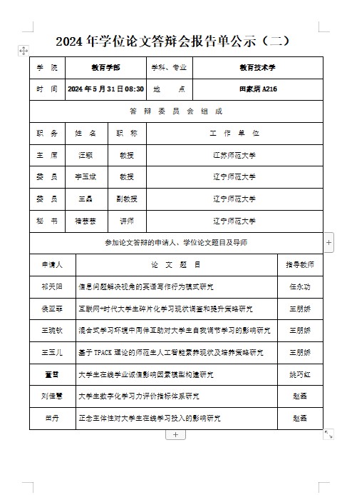 2024年学位论文答辩会报告单公示(二)