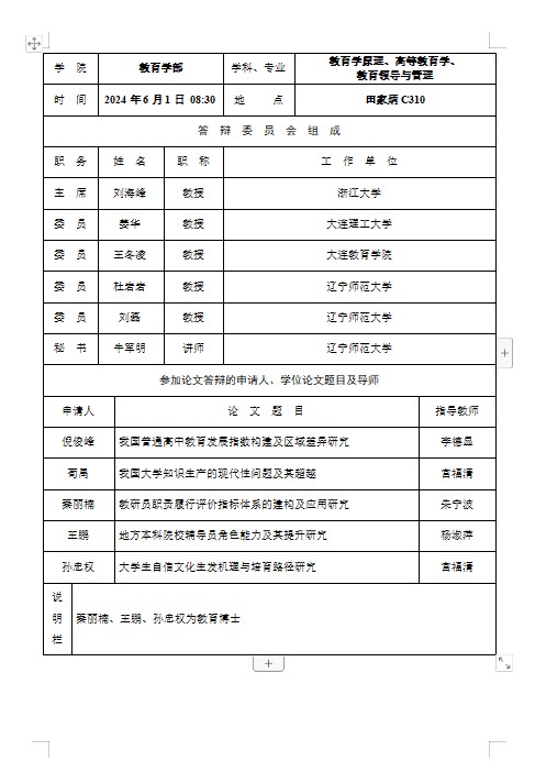 2024年学位论文答辩会报告单公示(三)