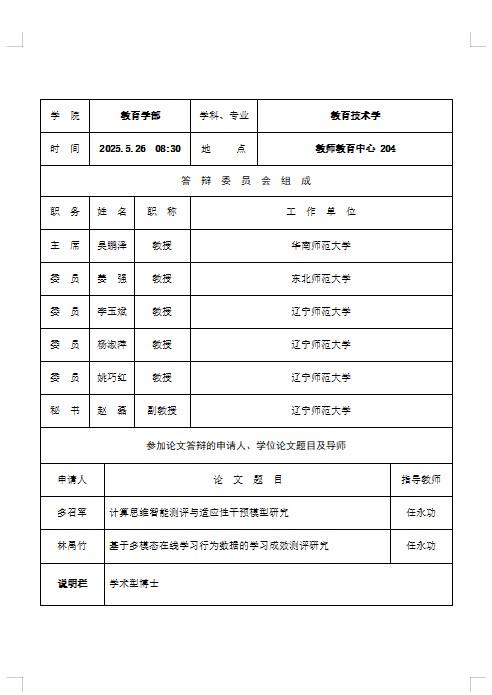 德州扑克 2025年研究生学位论文答辩会公示(一)